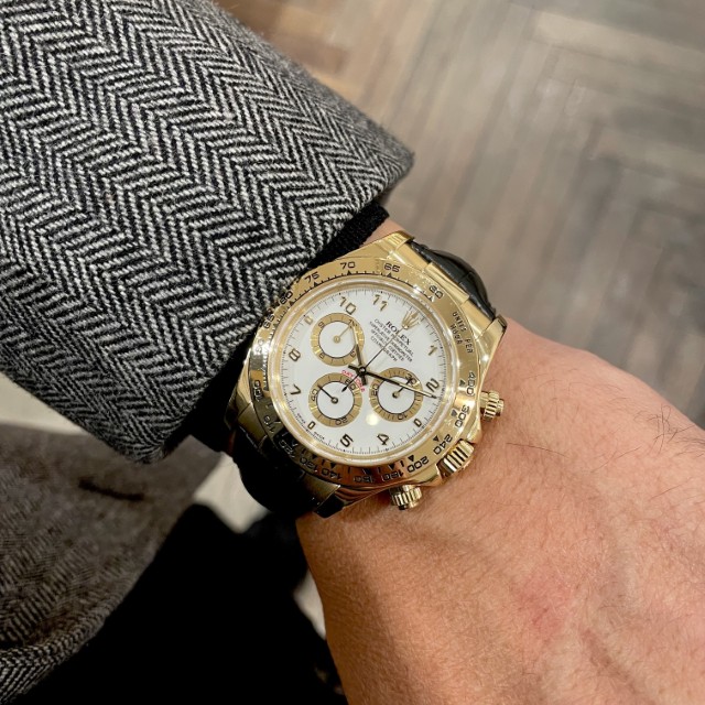 本日は、年々上昇傾向にある金相場と同じく上昇傾向にあるデイトナから、旧型の金無垢デイトナRef.116518をご紹介いたします。